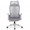 Elegancki fotel obrotowy w szarym kolorze, wykonany z wysokiej jakości wentylowanej siatki air mesh, oferuje doskonałe połączenie nowoczesnego designu i ergonomicznej funkcjonalności, idealne zarówno do biura, jak i domowego gabinetu. Ergonomicznie zaprojektowane siedzisko i oparcie zapewniają wyjątkowy komfort oraz wsparcie dla kręgosłupa, nawet podczas długotrwałego siedzenia. Regulowane podłokietniki, zagłówek oraz podparcie lędźwiowe umożliwiają pełne dostosowanie fotela do indywidualnych potrzeb użytkownika. Solidna pięcioramienna podstawa z wykończeniem w kolorze białym oraz kółka gwarantują stabilność i łatwość przemieszczania się po pomieszczeniu. Mechanizm obrotowy 360 stopni oraz regulacja wysokości siedziska i nachylenia oparcia pozwalają na komfortowe użytkowanie przez cały dzień. Dzięki trwałym materiałom oraz łatwości w utrzymaniu czystości, ten fotel łączy styl, komfort i funkcjonalność, stanowiąc doskonały wybór dla każdego, kto ceni ergonomiczne i eleganckie rozwiązania w miejscu pracy.
