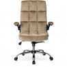 Beżowy fotel obrotowy do biura wykonany z wysokiej jakości weluru łączy elegancję z nowoczesnym designem, idealnie pasując do każdego profesjonalnego wnętrza. Jego starannie wykończona tapicerka wprowadza luksusowy akcent, jednocześnie zapewniając trwałość i łatwość w utrzymaniu czystości. Solidna konstrukcja gwarantuje długotrwałe użytkowanie, a estetyczne detale dodają prestiżu i komfortu pracy. Wybór tego fotela podkreśla profesjonalizm i dbałość o detale, czyniąc go doskonałym elementem wyposażenia zarówno w biurze, jak i w domowym gabinecie. Dzięki swojemu ponadczasowemu wyglądowi, fotel ten wzbogaca każde wnętrze, dodając mu stylu i elegancji. Jego klasyczny kolor harmonizuje z różnymi aranżacjami, podkreślając unikalny charakter przestrzeni, w której się znajduje.