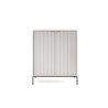 Bardzo oryginalna propozycja dla nowoczesnych wnętrz. Fronty komody są ryflowane, co oznacza niewielkie żłobienia. To nieco ekstrawaganckie wzornictwo zawojowało branżę meblarską – wygląda elegancko, a przy tym przytulnie. Ta komoda z serii Aura pokazuje również odwagę przy projektowaniu samej bryły. Nieco wyższa niż standardowe komody, posiada wysokie podwójne drzwi, za którymi kryją się półki. Rozwiązanie idealne nie tylko dla poszukujących piękna, ale też dla osób potrzebujących funkcjonalnych rozwiązań. Jednolite fronty w odpowiednio dobranym kolorze będą ozdobą każdego modernistycznego wnętrza – czy to domowego czy biurowego.