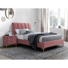 Parametry Wymiary zewnętrzne Szerokość [cm] - 219 Głębokość [cm] - 95 Wysokość [cm] - 108 Podstawowe ID Produktu - 9850 Kolorystyka - róż Podstawa Stelaż Rodzaj podstawy - nóżki Kolor podstawy - złoty Materac Wymiary materaca - 90x200 Materac w zestawie - Nie KonstrukcjaLozka Uwagi - Łóżko zawiera w komplecie stelaż z listew giętych osadzonych w elastycznych uchwytach.