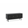 Nowoczesna szafka RTV MAZOMA 4D w eleganckim czarnym kolorze z ryflowanymi frontami i złotymi uchwytami to stylowy mebel do każdego salonu. Cztery zamykane drzwi zapewniają dużo miejsca na przechowywanie, a solidna konstrukcja i drewniana podstawa gwarantują trwałość. Idealna do wnętrz nowoczesnych, loftowych i glamour.