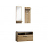 Przedpokój to pierwsze pomieszczenie w domu, które ma odzwierciedlać zarówno jego styl jak i Twój charakter. Nawet, gdy jest niewielki, możesz go dowolnie zaprojektować z tym zestawem mebli. Trójelementowy komplet w kolorze dębu wotan ma klasycznym charakterem i funkcjonalnością, zapewniając przy tym wszystko, co niezbędne. Każdy element możesz potraktować jako całość lub stworzyć własną aranżację. Pojemna szafka na z wygodną poduszką oraz wytrzymałe wieszaki pozwolą uporządkować ubrania wierzchnie i buty wprowadzając ład. Lustro doda uroku wnętrzu, a Ty wychodząc z domu zawsze będziesz mieć swój wygląd pod kontrolą.