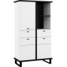 Nowoczesny regał na smukłym stelażu to połączenie minimalistycznego designu z funkcjonalnością. Pasuje zarówno do salonu, jak i biura, efektywnie wykorzystując przestrzeń. Regał oferuje trzy pojemne szafki, dwie szuflady oraz otwarte półki. To idealne miejsce do przechowywania i eksponowania ulubionych przedmiotów. Smukły stelaż dodaje lekkości konstrukcji, umożliwiając łatwe wkomponowanie mebla w różne wnętrza.