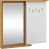 Ten wieszak to gustowne uzupełnienie przedpokoju. Można go połączyć z niemal każdą szafką na buty zyskując praktyczny komplet. Mamy tu połączenie drewna lub czerni z klasyczną bielą. Stylistyka jest prosta, ale niebanalna. Wieszaki pozwalają uporządkować kurtki i płaszcze, a lustro to dla większości z nas niezbędny element w przedpokoju. Z nim będziesz mieć pod kontrolą swój wygląd tuż przed wyjściem z domu. Lustro to również wdzięczny mebel w niewielkich i ciemnych wnętrzach, gdyż odbija światło i optycznie powiększa przestrzeń. Miłym dla oka dodatkiem jest wąska półka pod lustrem, idealna na szpargały czy drobną dekorację. Całość wykonano z materiałów odpornych na zarysowania dzięki czemu wieszak będzie mógł służyć Ci przez długi czas.
