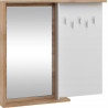 Ten wieszak to gustowne uzupełnienie przedpokoju. Można go połączyć z niemal każdą szafką na buty zyskując praktyczny komplet. Mamy tu połączenie drewna lub czerni z klasyczną bielą. Stylistyka jest prosta, ale niebanalna. Wieszaki pozwalają uporządkować kurtki i płaszcze, a lustro to dla większości z nas niezbędny element w przedpokoju. Z nim będziesz mieć pod kontrolą swój wygląd tuż przed wyjściem z domu. Lustro to również wdzięczny mebel w niewielkich i ciemnych wnętrzach, gdyż odbija światło i optycznie powiększa przestrzeń. Miłym dla oka dodatkiem jest wąska półka pod lustrem, idealna na szpargały czy drobną dekorację. Całość wykonano z materiałów odpornych na zarysowania dzięki czemu wieszak będzie mógł służyć Ci przez długi czas.