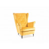 Ten wygodny fotel w stylu glamour na smukłych nóżkach z drewna bukowego, obszyty tkaniną imitującą aksamit, to doskonałe połączenie komfortu i elegancji, które doda uroku Twojemu wnętrzu.