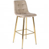 Ten elegancki hoker do kuchni lub jadalni łączy w sobie nowoczesny design z funkcjonalnością, idealnie wpisując się w aranżacje glamour. Wysokie, welurowe siedzisko w kolorze ecru zapewnia komfort i styl, dzięki pikowanemu wzorowi, który dodaje mu luksusowego charakteru. Stabilna podstawa wykonana z metalu w złotym kolorze gwarantuje trwałość i elegancję, jednocześnie dodając wnętrzu nowoczesnego akcentu. Hoker wyposażony jest w wygodny podnóżek, który zapewnia wsparcie dla nóg, co zwiększa komfort użytkowania. Dzięki swojej estetyce i funkcjonalności, hoker ten doskonale sprawdzi się zarówno w kuchni, jak i jadalni, będąc nie tylko praktycznym, ale i stylowym elementem wyposażenia wnętrza.