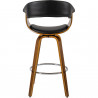 Ten stylowy hoker do kuchni lub jadalni łączy w sobie nowoczesny design z klasycznym urokiem sklejki giętej, co czyni go idealnym dodatkiem do każdego wnętrza. Tapicerowane siedzisko i oparcie wykonane z czarnej ekoskóry zapewniają wyjątkowy komfort podczas siedzenia, a solidna konstrukcja gwarantuje trwałość i stabilność. Hoker posiada praktyczny podnóżek, który umożliwia wygodne oparcie nóg, oraz funkcję obrotową, co dodatkowo zwiększa jego funkcjonalność. Eleganckie połączenie materiałów i ergonomiczny kształt sprawiają, że ten hoker doskonale wpisuje się zarówno w nowoczesne, jak i klasyczne aranżacje wnętrz, podkreślając ich wyjątkowy charakter i zapewniając komfort użytkowania.