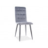 Minimalistyczne krzesło osadzone na smukłych metalowych nóżkach z siedziskiem obitym tkaniną imitującą aksamit, to połączenie nowoczesnego designu z luksusowym akcentem.