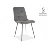 Nowoczesne krzesło w skandynawskim stylu, z wygodnym siedziskiem wykonanym z wysokiej jakości materiału imitującego aksamit i osadzone na smukłych metalowych nóżkach.