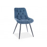 Minimalistyczne krzesło z eleganckimi metalowymi nóżkami oraz wygodnym siedziskiem wykonanym z wysokiej jakości materiału imitującego aksamit.