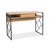 Nowoczesne loftowe biurko z metalowymi nogami o interesującym wzorze, wyposażone w szufladę oraz dwie małe półeczki, które doskonale komponuje się z przestrzenią, zapewniając stylowy i funkcjonalny element do pracy.