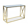 Konsola w stylu glamour z blatem ze szkła i złotym stelażem, które dodają elegancji pomieszczeniu, łącząc przy tym estetyczny design z funkcjonalnością.
