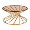 Elegancka ława z blatem wykonanym ze szkła hartowanego w kolorze bursztynu oraz posiadająca stelaż ze stali nierdzewnej w efektownym złotym odcieniu. Ten mebel to prawdziwa perełka, która doda niezwykłego uroku Twojemu salonowi.
