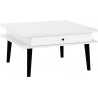 Minimalistyczna geometryczna ława z dwoma szufladami, osadzona na smukłych drewnianych nóżkach, to wyjątkowy mebel, który nie tylko zachwyca swoim estetycznym designem, ale także oferuje funkcjonalność.