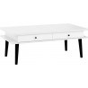 Minimalistyczna, podłużna, geometryczna ława z czterema szufladami, osadzona na smukłych drewnianych nóżkach, to wyjątkowy mebel, który nie tylko zachwyca swoim estetycznym designem, ale także oferuje funkcjonalność.