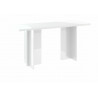 Nowoczesny stół, z połyskującym białym blatem i geometryczną podstawą w tym samym kolorze, który doskonale uzupełni minimalistyczne wnętrza.