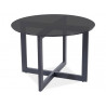 Minimalistyczny stolik z blatem wykonanym z dymionego szkła hartowanego, osadzony na solidnym metalowym stelażu, to wyjątkowy przykład nowoczesnego designu.