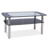 Opis Nowoczesny stolik kawowy ze szklanym blatem i praktyczną półką - elegancja i funkcjonalność w jednym.
