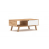 Stolik kawowy Tokio to wyjątkowy mebel, który idealnie uzupełni każde wnętrze. Ten model to jednak nie tylko stolik – pod blatem znajduje się otwarta półka oraz zamykana drzwiczkami szafka. Wszystko to z myślą o zapewnieniu Ci możliwości wykorzystania jego potencjału w pełni. Klasyczną klamkę do drzwiczek zastąpiliśmy subtelnym podcięciem we froncie, dzięki czemu stolik nie zawiera żadnych odstających elementów. Mebel wykonany został z najwyższej jakości materiałów, takich jak drewno bukowe czy płyta MDF postformowana, zabezpieczona dodatkowo obrzeżem ABS. Połączenie tych elementów zapewnia większą wytrzymałość na wszelkie uszkodzenia mechaniczne, a także działanie wilgoci. Stolik Tokio dostępny jest w dwóch wersjach kolorystycznych, dzięki czemu łatwiej dopasujesz go nie tylko do wystroju wnętrza, ale także do swojego charakteru. Ten model szczególnie polecamy osobom ceniącym sobie meble efektowne, a przy tym wytrzymałe i funkcjonalne.