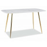 Parametry Podstawa Stelaż Materiał podstawy - metal Kolor podstawy - złoty Wymiary zewnętrzne Szerokość [cm] - 140 Głębokość [cm] - 80 Wysokość [cm] - 75 Podstawowe ID Produktu - 8730 Kolorystyka - biały Kolorystyka - żółty Blat Materiał blatu - szkło Kolor blatu - biały Stół Rozkładany - Nie Liczba Miejsc Przy Stole Złożony - 6 Liczba Miejsc Przy Stole Rozłożonym - 6