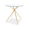 Elegancki okrągły stół w stylu glamour, osadzony na smukłym metalowym stelażu oraz posiadający wytrzymały szklany blat.