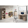 Ta komoda Global łączy w sobie funkcjonalność i prostotę. Będzie dobrym dopełnieniem biura, salonu jak również pokoju młodzieżowego. Cechuje ją duża liczba szuflad i jasna kolorystyka. Każda z czterech szuflad posiada poręczne uchwyty. Znakomicie sprawdzą się przy porządkowaniu przestrzeni. Komodę wykonano z płyty wiórowej laminowanej, co zapewnia zwiększoną odporność na zarysowania i wahania temperatury. Mimo wystających elementów, fronty są gładkie i łatwe w czyszczeniu, podobnie jak blat, który może posłużyć do trzymania książek, dokumentów czy dekoracji. Komoda będzie dobrze prezentować się połączona z innymi meblami kolekcji Global tworząc z nimi spójną aranżację.