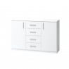 Komoda Global 03 doskonale posłuży do uporządkowania rzeczy codziennego użytku. Składa się z szuflad i dwóch szafek. Łatwo podzielić tę przestrzeń pomiędzy domowników. Mebel może równie dobrze stać w sypialni jak i w salonie czy pokoju dziecka. Wysokiej jakości płyta laminowana jest odporna na zarysowania i wilgoć. Przy odpowiednim traktowaniu może służyć przez lata. Komodę cechuje proste wzornictwo. Dostępna jest w bieli lub popularnym odcieniu dąb sonoma. Dzięki temu będzie dobrze prezentować się w jasnych wnętrzach, gdzie może stanowić główny punkt aranżacji bądź być jej dopełnieniem. Dobrym pomysłem jest połączenie tej komody z innymi meblami kolekcji Global.