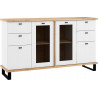 Minimalistyczna komoda z metalowym stelażem, wyposażona w pojemne szuflady i szafki, zapewniające dodatkową przestrzeń na przechowywanie przedmiotów codziennego użytku w eleganckim stylu.