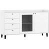 Elegancka minimalistyczna komoda na smukłych drewnianych nóżkach, z praktycznymi szufladami i pojemnymi szafkami, oferującymi dużo miejsca na przechowywanie. Komoda posiada również przeszklone drzwi, które umożliwiają wyeksponowanie ulubionych przedmiotów, dodając zarazem wyjątkowego charakteru wnętrzu.