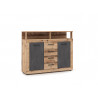 Stylowa komoda do salonu w odcieniu dębu z elementami szarości to doskonały wybór do nowoczesnych wnętrz. Komoda posiada przestronną przestrzeń do przechowywania, z dwoma pojemnymi szafkami oraz czteroma szufladami, które pomogą w organizacji rzeczy codziennego użytku, takich jak dokumenty, akcesoria czy dekoracje. Dodatkowa półka na górze komody stanowi doskonałe miejsce na przechowanie drobnych przedmiotów lub ozdób. Mebel ten łączy nowoczesny design z praktycznością, sprawdzając się w różnych aranżacjach salonów i innych przestrzeni mieszkalnych.