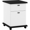 Ten minimalistyczny kontenerek pod biurko to idealne rozwiązanie do przechowywania. Wyposażony w szufladę oraz szafkę, oferuje praktyczną przestrzeń do organizacji biurowych akcesoriów i dokumentów. Główna bryła kontenerka utrzymana jest w stonowanym białym kolorze, natomiast akcenty w kolorze drewna lub czerni dodają kontrastu, nadając meblowi charakteru i stylu.