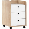 Ten minimalistyczny kontenerek pod biurko to idealne rozwiązanie do przechowywania. Wyposażony w trzy szuflady, oferuje praktyczną przestrzeń do organizacji biurowych akcesoriów i dokumentów. Front oraz górna część kontenerka utrzymane są w stonowanym białym kolorze, natomiast korpus w kontrastującym kolorze drewna lub klasycznej bieli tworzącej jednolitą całość z frontem.