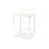 Klasyczna, metalowa szafka nocna z dekoracyjnymi detalami, wyposażona w górną półkę i praktyczną siatkową półkę na dolnym poziomie, idealna do dodania eleganckiego akcentu do sypialni.