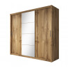 Szafa Diego to monumentalny mebel o szerokości aż 235 centymetrów, który jednak dzięki gustownemu wyglądowi nie zdominuje pomieszczenia. Świetnie sprawdzi się zarówno w sypialni jak i garderobie czy przedpokoju. Wnętrze zapewnia wiele miejsca do przechowywania. Zostało tak zaprojektowane, aby optymalnie spożytkować dostępną przestrzeń oraz ułatwić codzienne korzystanie z szafy. Są więc wieszaki na krótsze i dłuższe ubrania, półki i szuflady. Szafę wyposażono w przesuwne drzwi na prowadnicach oraz lustro na całej wysokości mebla. Pozwoli to na przeglądanie się od stóp do głowy. W drzwiach znajdują się poręczne i wygodne uchwyty. Wykończenie to solidny korpus, gotowy wytrzymać maksymalne obciążenie szafy, oraz wysokiej trwałości, odporny na uszkodzenia, laminat.