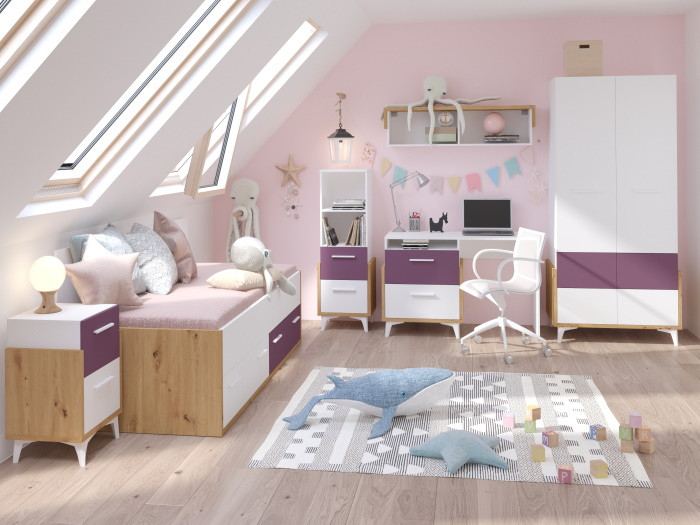 Fotel obrotowy Stilo II biały stelaż - tkanina magenta