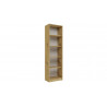 Nowoczesny regał do salonu to stylowe i funkcjonalne rozwiązanie do przechowywania książek, dekoracji i innych drobnych przedmiotów. Wykonany z trwałej płyty meblowej o naturalnym wyglądzie drewna, ten regał posiada cztery pojemne półki, które zapewniają mnóstwo miejsca na organizację wnętrza. Jego smukła, pionowa konstrukcja idealnie wpasuje się nawet w niewielkie przestrzenie, nadając im elegancji i nowoczesnego charakteru. Regał doskonale komponuje się z różnymi stylami wnętrz, od minimalistycznych po bardziej tradycyjne, wnosząc do salonu ciepło i przytulność.