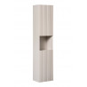 Szafka łazienkowa z przestronnymi półkami, doskonale nadająca się do przechowywania niezbędnych akcesoriów. Wykonana z wysokiej jakości materiałów, charakteryzuje się subtelnym ryflowanym wzorem na frontach, co dodaje jej nowoczesnego i eleganckiego wyglądu. Posiada otwartą przestrzeń w centralnej części, która idealnie nadaje się do eksponowania dekoracyjnych przedmiotów lub przechowywania często używanych akcesoriów. Neutralna kolorystyka w odcieniu kaszmiru sprawia, że szafka wpasowuje się w różnorodne aranżacje łazienkowe, wprowadzając do wnętrza harmonię i porządek. To funkcjonalny element, który łączy estetykę z praktycznością.
