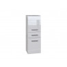 Elegancki słupek łazienkowy w nowoczesnym stylu, wykończony w połyskującym białym kolorze, stanowi doskonałe rozwiązanie do każdej łazienki. Ten funkcjonalny mebel wyposażony jest w pojemne szuflady oraz praktyczne półki, które umożliwiają wygodne przechowywanie ręczników, kosmetyków i innych akcesoriów łazienkowych. Dzięki swojej kompaktowej konstrukcji, słupek idealnie sprawdzi się nawet w niewielkich łazienkach, oferując dużo miejsca do przechowywania bez zajmowania cennej przestrzeni. Wysoka jakość materiałów oraz precyzyjne wykonanie zapewniają trwałość i odporność na wilgoć, co czyni go idealnym wyborem dla osób szukających stylowego i praktycznego wyposażenia do swojej łazienki.