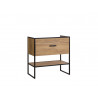 Szukasz nowoczesnej szafki pod umywalkę do designerskiej łazienki? Kolekcja Laut będzie idealna. Mebel dostępny w trzech rozmiarach, od 65 cm szerokości do 80 cm, umożliwia montaż umywalki podblatowej, a w wersji 90 cm szerokości, umywalki nablatowej. Poniżej znajduje się niezbędna szuflada na akcesoria łazienkowe oraz półka, na której możesz na przykład ułożyć ręczniki w kolorystyce odpowiedniej do stylu łazienki. Ciemny, drewniany odcień frontów w połączeniu z czarnym, matowym stelażem i klamkami tworzy niepowtarzalny, nowoczesny styl, idealnie wpisujący się w industrialne wnętrza. Świetnie będzie kontrastować z jasnymi kaflami. Materiały są odporne na upływ czasu i czynniki zewnętrzne takie jak wilgoć.