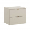 Zestaw mebli łazienkowych z dwoma pojemnymi szufladami to elegancka i funkcjonalna propozycja do nowoczesnych łazienek. Meble charakteryzują się minimalistycznym designem, który w połączeniu z subtelnym, złotym uchwytem na szufladach tworzy wyjątkowy, elegancki efekt. Wykonane z wysokiej jakości materiałów, meble oferują dużą przestronność, umożliwiając przechowywanie niezbędnych akcesoriów łazienkowych, kosmetyków i ręczników. Prosta forma mebla w połączeniu z eleganckim wykończeniem w kolorze kaszmirowym pasuje do różnych stylów aranżacji, szczególnie tych nowoczesnych. Zestaw będzie idealnym wyborem do łazienek, które wymagają zarówno estetyki, jak i funkcjonalności.