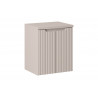 Zestaw mebli wiszących do łazienki o nowoczesnym designie, idealny do minimalistycznych wnętrz. Meble wykonane z wysokiej jakości materiałów, w eleganckim odcieniu kaszmiru, wyróżniają się subtelnym, ryflowanym wzorem na drzwiczkach, który nadaje im elegancji i teksturalnego charakteru. Zestaw składa się z szafki z pojemnymi drzwiami, która doskonale sprawdzi się w przechowywaniu niezbędnych akcesoriów łazienkowych. Dzięki wiszącej konstrukcji, meble optycznie powiększają przestrzeń, zachowując estetykę i funkcjonalność. To rozwiązanie, które pasuje do każdego nowoczesnego wnętrza łazienki.