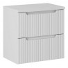 Zestaw wiszący do łazienki to elegancka propozycja, która łączy nowoczesny design z funkcjonalnością. Szafka w białym kolorze posiada subtelny, ryflowany wzór na frontach, co nadaje jej unikalny charakter. Gładki, matowy blat dopełnia całość, tworząc harmonijną kompozycję. Dzięki dwóm przestronnym szufladom, zestaw zapewnia dużą ilość miejsca na przechowywanie akcesoriów łazienkowych. Ten zestaw jest idealnym rozwiązaniem do nowoczesnych łazienek, wnosząc do wnętrza zarówno elegancję, jak i porządek.