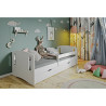 Parametry Wymiary zewnętrzne Szerokość [cm] - 184 Głębokość [cm] - 90 Wysokość [cm] - 65 Podstawowe ID Produktu - 12838 Kolorystyka - biały Front Materiał frontów - płyta MDF lakierowana Korpus Materiał korpusu - płyta meblowa laminowana Grubość korpusu [mm] - 18 Podstawa Stelaż Max Obciążenie Podstawy [kg] - 100 Szuflada Szuflada - Tak Materac Materac w zestawie - Tak Materiał materaca - piankowy Budowa materaca - Wymiary materaca - 180x80