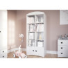 Ten biały regał do pokoju dziecięcego to prosty mebel z uroczymi serduszkowymi uchwytami. Posiada zamykaną szafkę i pojemne półki na przechowywanie dziecięcych zabawek i książek. Idealny dodatek do przytulnego pokoju dziecka.