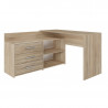 Biurko do biura w kolorze dąb sonoma to praktyczne i stylowe rozwiązanie, które idealnie sprawdzi się w każdym wnętrzu biurowym. Wykonane z trwałej płyty laminowanej, zapewnia wysoką odporność na uszkodzenia mechaniczne i łatwość w utrzymaniu czystości. Biurko wyposażone jest w trzy przestronne szuflady oraz otwarte półki, które umożliwiają wygodne przechowywanie dokumentów, akcesoriów biurowych i książek, co pozwala na utrzymanie porządku w miejscu pracy. Jasny odcień dębu sonoma dodaje wnętrzu ciepła i elegancji, a nowoczesny design biurka sprawia, że jest ono nie tylko funkcjonalnym, ale także estetycznym elementem wyposażenia biura. Dzięki ergonomicznemu kształtowi i odpowiedniej wysokości, biurko zapewnia komfort pracy przez wiele godzin. To idealny wybór dla osób, które cenią sobie połączenie stylu z funkcjonalnością.