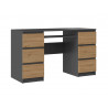 Biurko do biura to nieodzowny element każdego miejsca pracy, zapewniający komfort i funkcjonalność. Prezentowane biurko łączy w sobie nowoczesny design z praktycznymi rozwiązaniami, idealnie wpisując się w każdą przestrzeń biurową. Wykonane z wysokiej jakości płyty wiórowej laminowanej, w eleganckiej kombinacji kolorów antracytu i dębu artisan, biurko przyciąga uwagę swoją estetyką i solidnością. Szeroki blat oferuje dużo miejsca na komputer, dokumenty oraz niezbędne akcesoria biurowe, co umożliwia zachowanie porządku i efektywną organizację pracy. Biurko wyposażone jest w sześć pojemnych szuflad, które pozwalają na przechowywanie wszystkich niezbędnych rzeczy w zasięgu ręki, a dodatkowa wysuwana półka na klawiaturę zwiększa ergonomię użytkowania. Dzięki swojej trwałej konstrukcji, biurko zapewnia stabilność i długotrwałe użytkowanie. Idealne dla osób ceniących sobie zarówno funkcjonalność, jak i nowoczesny styl, to biurko będzie doskonałym wyborem do każdego biura, przyczyniając się do poprawy komfortu pracy i estetyki wnętrza.