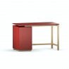 Minimalistyczne biurko z jedną szafką i półką w środku, wykonane z litego drewna sosnowego, cechujące się wysoką funkcjonalnością oraz estetyką.