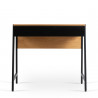 Biurko wyposażone jest w funkcjonalną, obszerną szufladę w kolorze czarnym, która nie tylko stanowi elegancki element dekoracyjny, ale także oferuje praktyczne miejsce do przechowywania biurowych akcesoriów, dokumentów czy sprzętu elektronicznego. Lekkość konstrukcji i prosta forma sprawiają, że biurko doskonale komponuje się w różnorodnych aranżacjach, od nowoczesnych biur po minimalistyczne domowe gabinety.