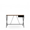 Wyjątkowa konstrukcja nóg w kształcie litery 'X' nie tylko stanowi solidne podparcie, ale także dodaje biurku charakteru i nowoczesności. Ta konstrukcja zapewnia stabilność i trwałość, dzięki czemu biurko może służyć przez wiele lat. Szuflada zintegrowana w boku biurka jest wykończona w kontrastującym czarnym kolorze, co dodaje elegancji i nowoczesnego stylu.